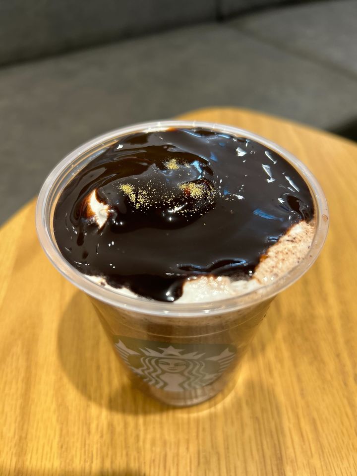 ドリンクの中の「チョコレートパウダー&チョコレートチップ」、「ホワイトチョコレートパウダー&ホワイトチョコレートチップ」のツブツブ感とフラペチーノのシャリシャリ感が渾然一体となって得も言われぬ美味しさ!コーヒーの香りは、ほのかな香りで強すぎないのでコーヒーが苦手な方でも抵抗なく飲めるのではないでしょうか。