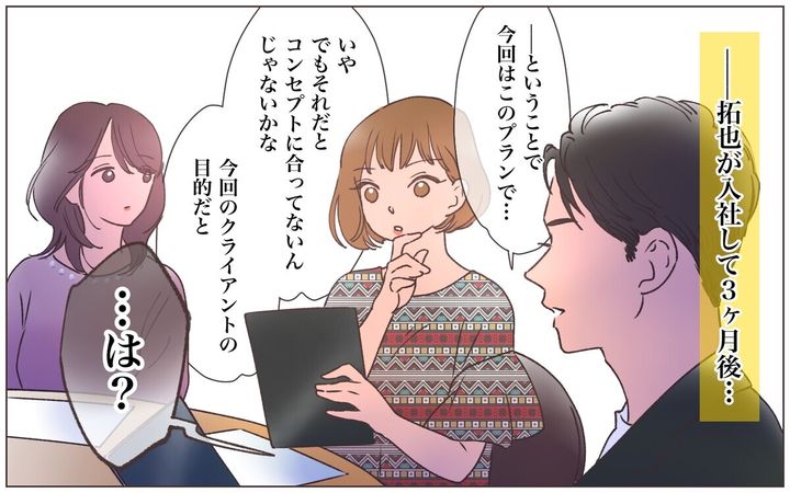 朋子は由香里に対してもどこか違和感を感じました。そして由香里と拓也に仕事を任せ始めた頃のこと。