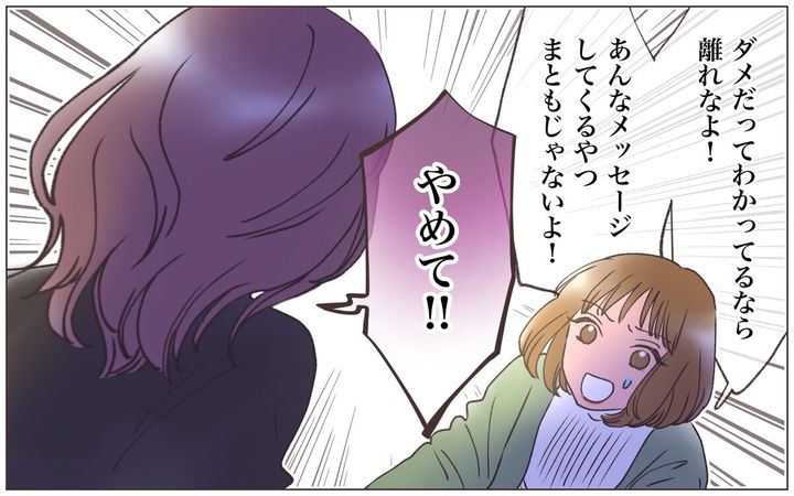 突如、豹変した由香里。と同時に、拓也から着信に由香里は出ようとせず、怯えた様子で朋子に助けを求め始めます。拓也から届いたメッセージを朋子が見ると…。
