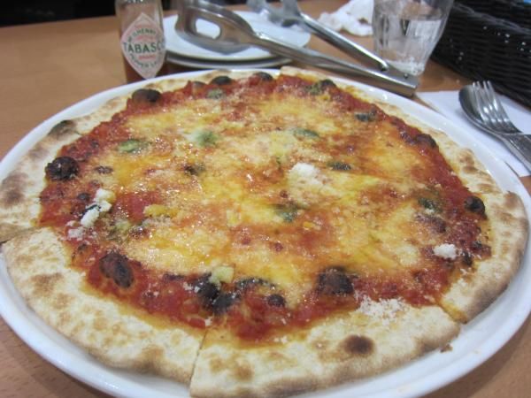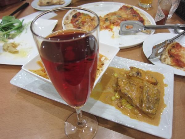 前回食べなかったピザを頼みました。人気メニューのマルゲリータです。薄目なピザ生地が香ばしくて小麦の香り旨みで美味しくて、トマトの旨み甘味酸味とバジルの香りとチーズのコクで、間違いなしの美味しさでした。ビックサイズで、1枚が食べ応えのある大きさです。