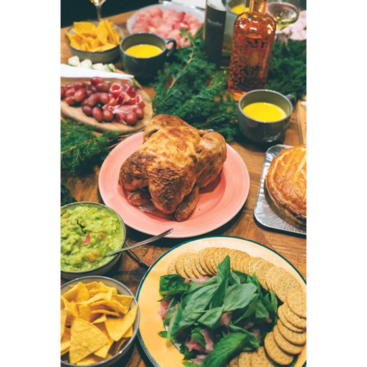 「Thanksgiving(感謝祭)」はアメリカなどで本来家族と祝うものなのですが、家族と一緒に過ごせない人たちが友達とホムパをする「Friendsgiving」というのが流行っていて、2022年から開催しています。前回はメンバーのマンションのシェアルームを使わせてもらったのですが、今回は浅草にあるゲストルーム「DENCHI HOUSE」を貸し切りにして開催。オシャレな空間なのはもちろん、キッチンに家電も揃っていて、6名まで宿泊が可能。乾杯して食事をして、プレゼント交換をして、夜通しガールズトークして…というところまでセットで楽しめるんです!