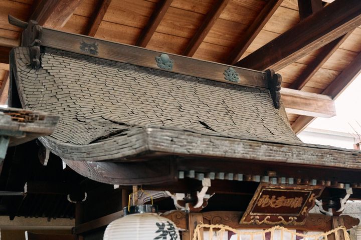 さらに注目していただきたいのは、拝所と手水舎の繊細な彫刻。1717年、江戸時代後期にのちの大丸百貨店となる呉服店を創業した下村彦右衛門が行商へ向かう途中にあった瀧尾神社に毎日手を合わせ、のちに大繁栄したことから下村家から2500両、現在の貨幣価値5億に相当する大規模な寄進を受けました。下村彦右衛門のと九山新之丞の惜しげもなく注ぎ込んだ彫刻は、今もなお丁寧に修復され現代へと継承されています。