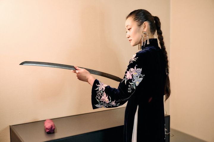 大賓殿では現在、本能寺で焼失したとされる織田信長の愛刀が復元され展示されており、実際に手に触れることもできました。