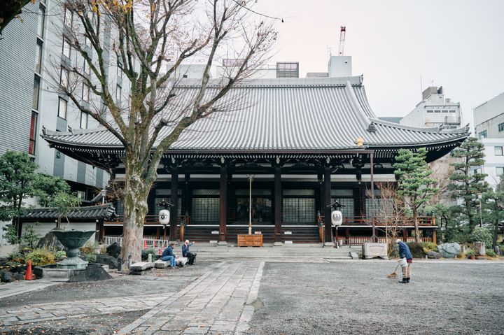 本能寺は法華宗の大本山。境内には天明の大火の際に木から水が噴き出し、木の下にいた人々を救った「火伏せのイチョウ」や織田信長の供養塔、立派な大賓殿宝物館があります。