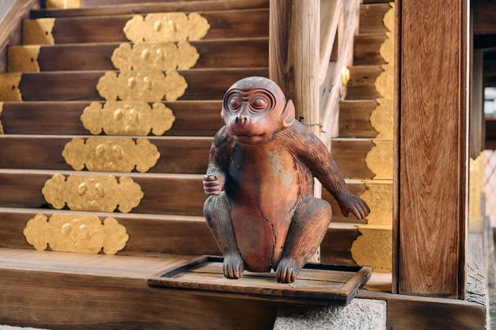 干支の最後まで進むと犬と猪の順番が逆に彫られています。どうしてでしょう?日光東照宮の「眠り猫」で有名な伝説の彫刻師・左甚五郎は知恩院の屋根のてっぺんにまるでまだ作業途中かのように瓦を4枚残しています。これは『満つれば欠くる世の習い』“完成してしまうと後は朽ちてしまうだけ”つまり、犬と猪を逆に彫ることで、まだ完成していない・まだまだ発展途上だということを表すため。九山新之丞の粋な計らいをこの一枚の彫刻から感じ取ることができます。