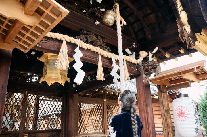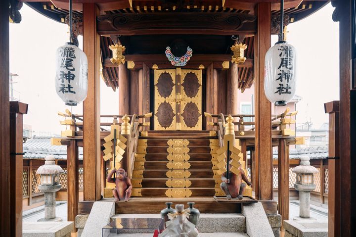 今年の干支は。龍のようにみなさまの幸福が天高く上昇するように、とご紹介すべくやってきたのは〈瀧尾神社〉。鳥居をくぐり拝殿を覗き込むと、そこには動き出しそうなほどの巨大な龍の彫刻が。木造のものとしては日本一の大きさで、祇園祭の大船鉾の船首につく龍頭は、ここを元に2016年に復元されたものなのだそう。