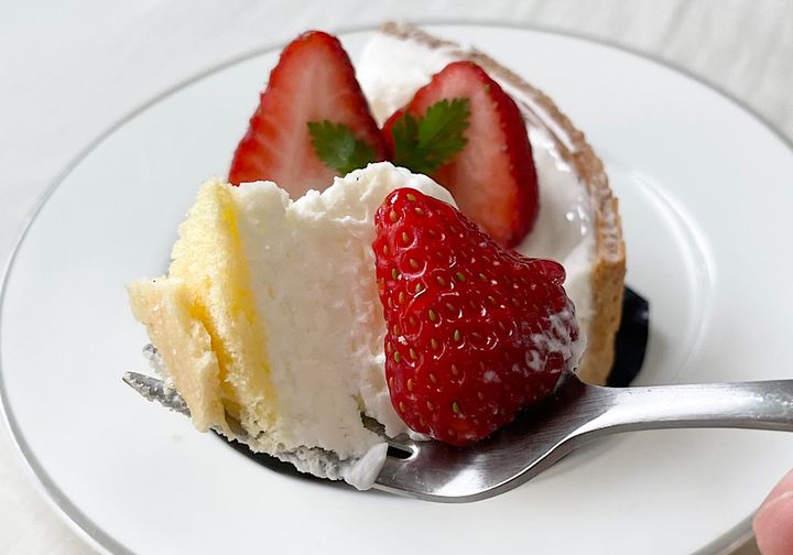 食べてみると、軽さのあるホイップクリームと、少しもったりとした爽やかな酸味のクリームチーズが合わさって、なめらかな口どけ。タルト生地は、薄めではあるもののしっとりしているからか、クリームを邪魔しません。いちごと一緒に食べると、甘味と酸味が合わさって癒されるおいしさ。甘すぎないため飽きずにぺろっと食べられる、大人も満足できる逸品です。