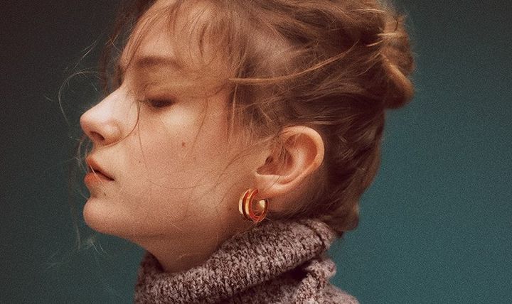 肌にぴたりと沿うタートルネック。つまった見た目を解消し、表情に明るいニュアンスをもたらすべく、大ぶりなゴールドのピアスを選択。重厚かつレトロなデザインで、クールな1着に少しの遊びを。