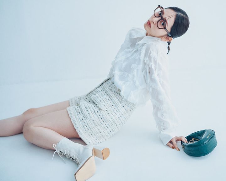 ツイードショートパンツ 19,900円/Mardi Mercredi(MUSINSA JAPAN) フリンジシャツ 18,480円/GHOSPELL(ザ・ウォール ショールーム) めがね 20,900円/ダブルラバーズ(スクリーンショット) ミニバッグ 11,900円/チャールズ&キース(チャールズ&キース ジャパン) ブーツ 15,400円/rienda(バロックジャパンリミテッド)