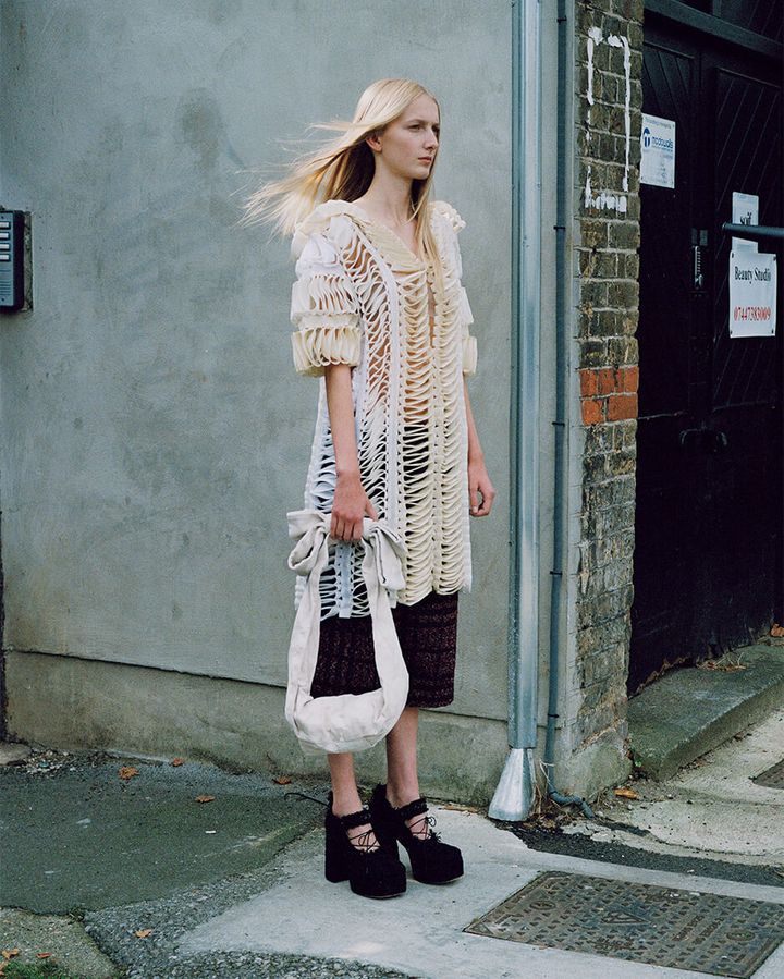 dress, shoes and bag by SAMUEL SLATTERY, shoes by SIMONE ROCHA