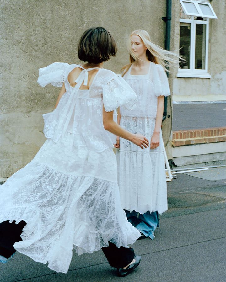 jacket and skirt by MOLLY GODDARD, hoodie by STRONGTHE