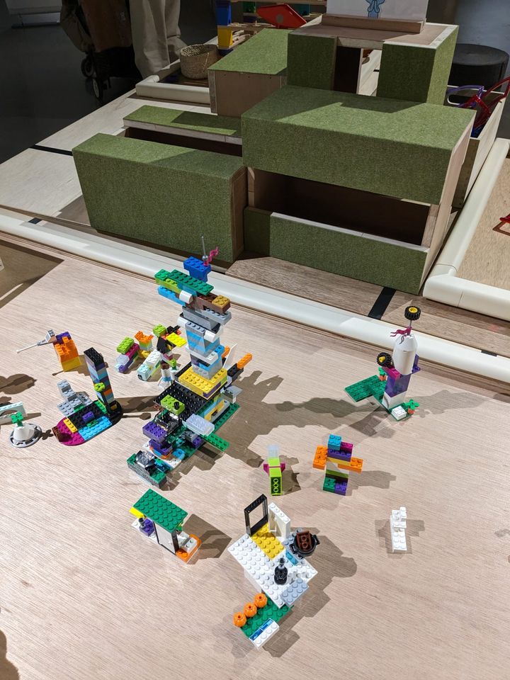 ブロックや、粘土、パズルにボールコロコロの知育教材。ボタンを押すと鳥や虫の鳴き声が出てくるものやボッチャなども!q(@´3`@)p絵本や大人向けの本もあり、いつまででも遊んでられる。(自分が)