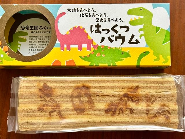 3. 【福井県おすすめ土産】恐竜の焼き印が入ったバウムクーヘン「はっくつバウム」を実食
