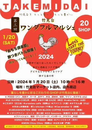 1月20日(土)、竹見台マーケット(吹田市竹見台3-6-6)で「第三回 竹見台ワンダフルマルシェ」が午前10時~午後4時に開催されます。