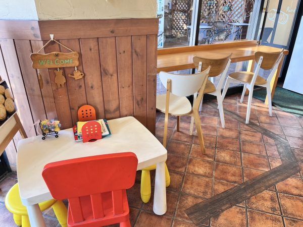 お店にはカップドリンクの自動販売機のあるイートインコーナーもあります。小さな子どもサイズの椅子も設置されていて、子ども連れでも安心してうかがえるお店です。