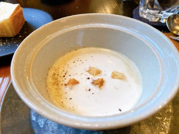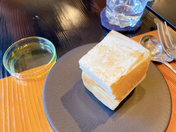 最初にパンとオリーブオイルが運ばれてきて、これが、とっても美味しくてびっくり! 仙台市内にあるバーニャのパン(Pain bagnat)のパンなのだそうですが、生クリームを使用していないのに、とーってもしっとりしていて美味しかったです。この後、おかわりしてしまいました。