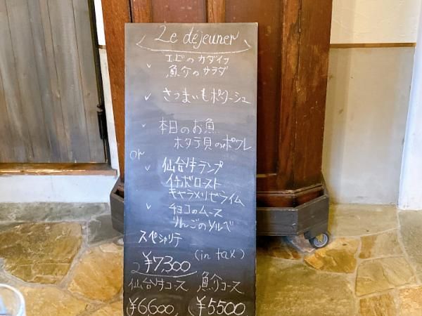この日のランチメニューは、メインが仙台牛だと6600円、魚介だと5500円、お肉も魚介も両方のスペシャリテ7300円です。