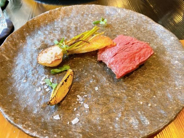 この辺で、「あれ、後はメインとデザートで終わりだから、お肉と魚介、両方食べられるんじゃ・・・」と思った私。隣の友人も「(スペシャリテ)両方いきます?」ということで、店員さんにメインを全員スペシャリテに変えられるか確認して両方味わうことに。 (食べている途中で変えるなんて失礼いたしました)