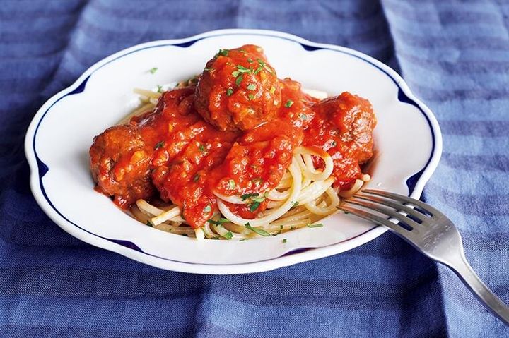 3. 太麺パスタがより旨くなる"ごろごろミートボールスパゲッティ"