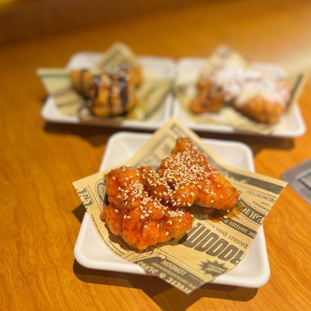 定番のヤンニョムチキンのほか、おすすめは、チョコアーモンド。甘いとしょっぱいのベストコンビネーションはいくらでも食べられそうです。