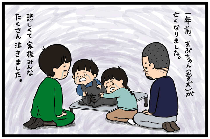 「あぶちゃんはうちの子で幸せやったんかなぁ」「もっと早く病院へ行けば助かったんかなぁ」「もっといろんなことをしてあげればよかったなぁ」とか…