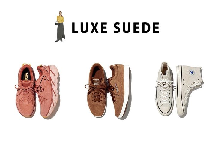 一口にスニーカーと言っても、タイプはさまざま。中でも旬なスポーティなスニーカーが実は苦手…そんな人にぜひおすすめしたいのがスエード素材。ボトムによってはテカりが気になるレザー素材などのツヤ感、キャンバス地だとちょっとカジュアルすぎ、という場合にも「しっくりくる」のはスエード素材。