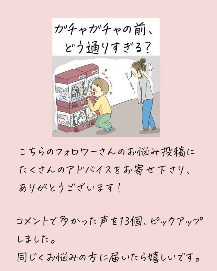 子どもにとって魅惑の「ガチャガチャ」。親にとってはこのガチャガチャが悩みのタネとなることもありますよね。見かけるたびにせがまれたり、やるまで歩き出してくれなかったり…。ガチャガチャを見つけるとドキドキするママやパパも多いのではないでしょうか。今回は、まめねこ|頑張りすぎない子育て(@ma.me.ne.ko)さんがSNSで紹介する、ガチャガチャ対策をご紹介します。