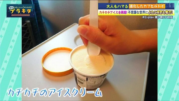冷凍庫から出したばかりのアイスクリームがカチカチで、