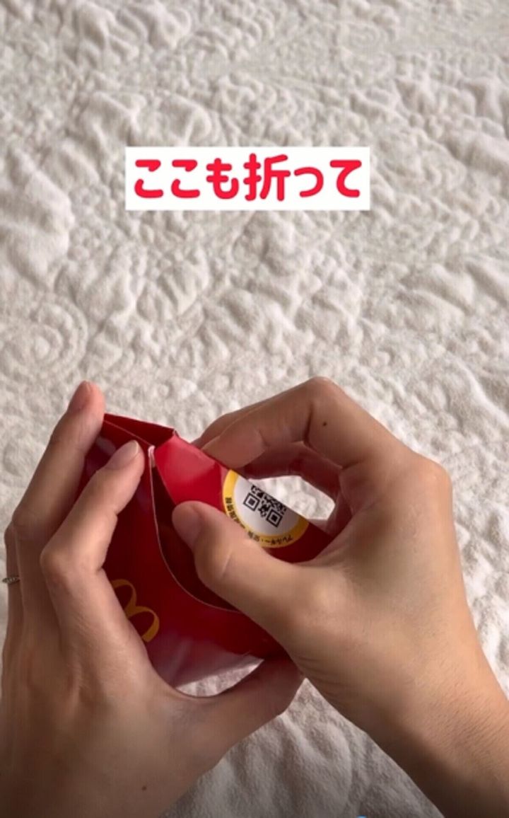 まず、画像のようにポテトの箱の両端を中央に折り込みます。