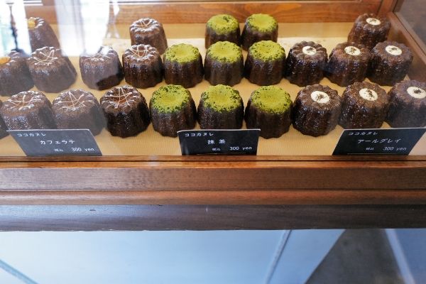 目移りしつつ、「ショコラ(300円)」「カフェラテ(300円)」「抹茶(300円)」「アールグレイ(300円)」(すべて税込)の4つを選びました。ショコラは甘くて食べやすいので、お子さんにも人気だとか。カヌレの日持ちは常温だと翌日まで、冷凍すると10日程だそうです。