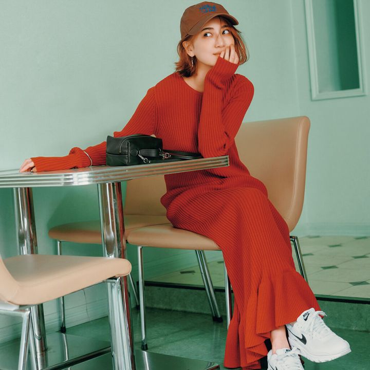 キレイめワンピ×スニーカーに合わせてキャップ迷子は卒業