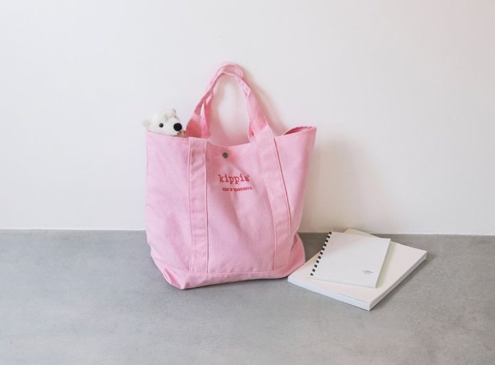 キッピスのロゴを刺しゅうで表現したフロント部分が、ワンランク上のアーバンな雰囲気を演出してくれるトートバッグ。ベースの本体とステッチのカラーにも全色こだわり、コンビネーションが絶妙です。カラーはピンク、ブルー、チャコールグレー、グリーンの全部で4色。