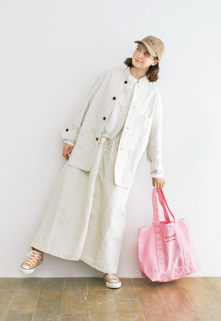 飽きのこないデザインと持ちやすい実用性を兼ね備えたトートバッグなので、同系色で揃えたり、またはコーディネートの差し色にしても、スタイリングがまとまります。通勤、通学にはシックなチャコールグレーやブルーを、ショッピングやレジャーには明るいピンクやグリーンを選ぶなど、シーンや気分に合わせて使い分けしてみては。