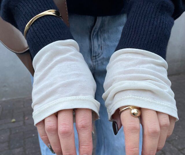 少し前までは、首元や裾からレイヤードアイテムを見せるのがおしゃれでしたが、今年は長めに袖を出してあげるのがポイント。