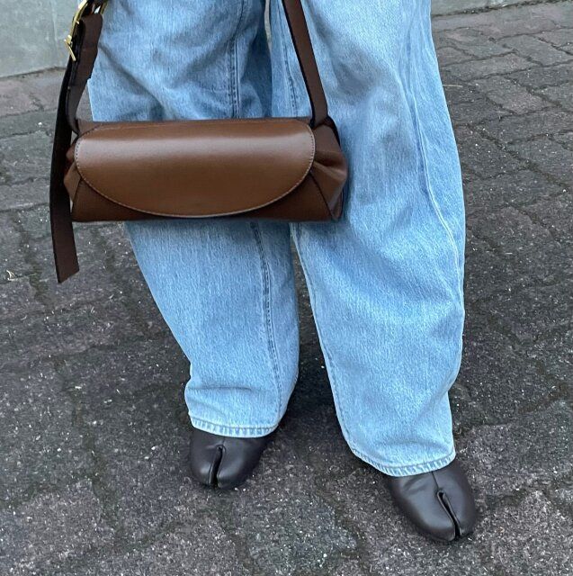 カジュアルな洋服に、カジュアルなバッグと靴だと惜しい印象に。レザーなどの艶ものを選びましょう。冬はブーツにするだけでおしゃれに見えますよ。
