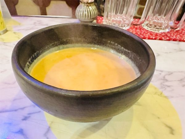 食後には温かいチャイを注文。大きなお椀で出てきてびっくり!