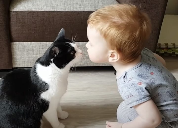 赤ちゃんと猫の、心通じ合う素敵な関係♡