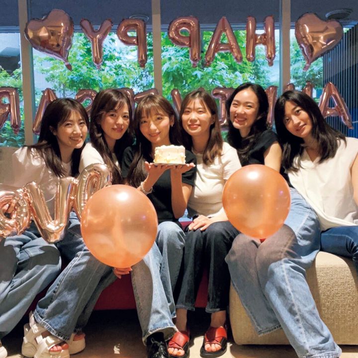 社会人になってからも集まる仲良しメンバーで、’23年は盛大に誕生会を開きました。マンションの共有スペースを借りて、風船アートでフォトジェニックなスペースを作り、ドレスコードを白T×デニムで統一して撮影会も!大人になってもはしゃげるのがホムパのいいところです。