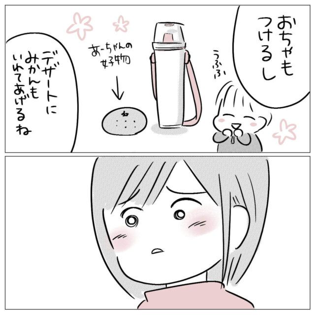 「おもちゃもつけるし、デザートにみかんもいれてあげるね」