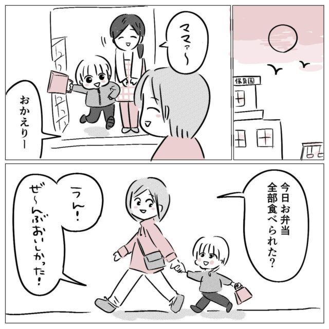 3歳の男の子あーちゃんのママであるホッターさんから、お弁当のお話です。保育園で月に一度あるお弁当の日、夕方お迎えに行くとあーちゃんの口から嬉しすぎる言葉が・・・。