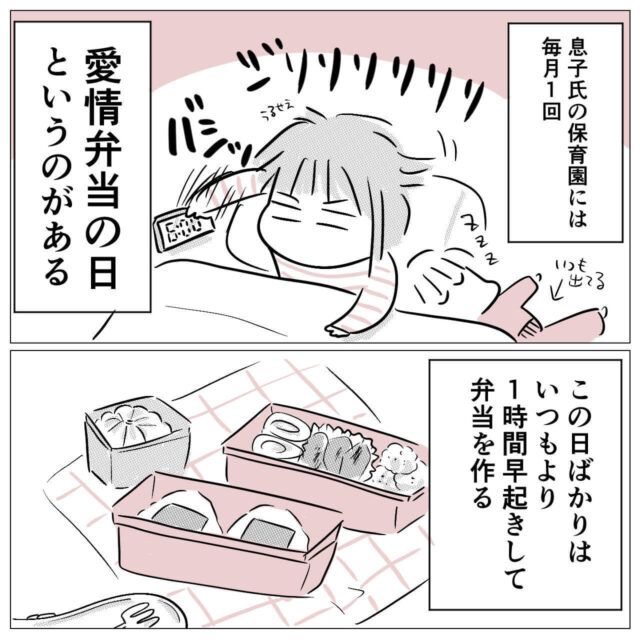息子氏の保育園には、毎月1回「愛情弁当の日」というのがある。
