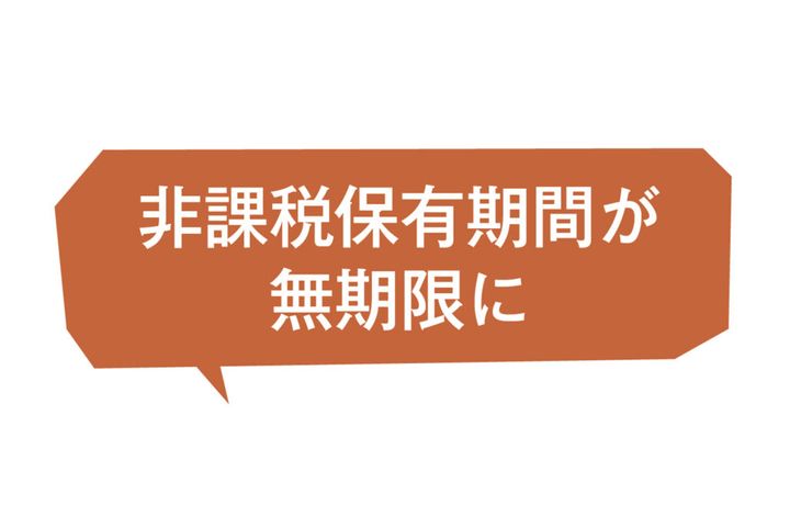 現行NISAでの非課税保有期間は「つみたてNISA」が20年、「一般NISA」が5年と限定されていましたが、新NISAでは無期限に。今まではまだお金を使う予定がなかったり、運用を続けられる状況でも、5年や20年のタイミングで売却などの検討が必要でした。新NISAでは本当に売却が必要な状況になるまで運用を続けられるのが大きな特徴です。