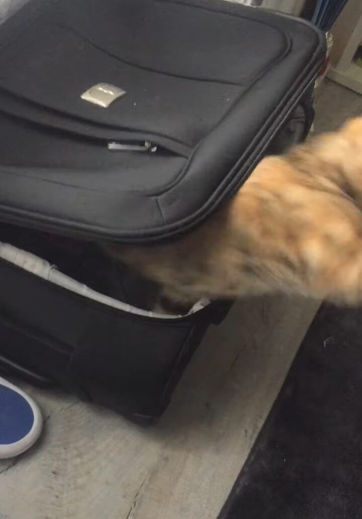 3. 黒猫の悪いイタズラ。黒猫が乗るスーツケースがガタガタ揺れていると思ったら・・中に猫が【海外・動画】