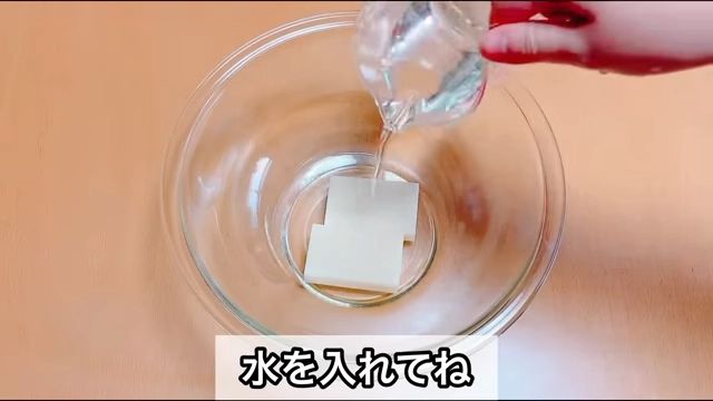 まずは切り餅を耐熱ボウルに入れ、水を加えます。