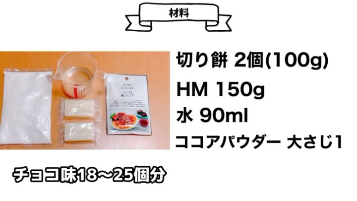 チョコ味の場合は、プレーンの材料にココアパウダーが加わります。
