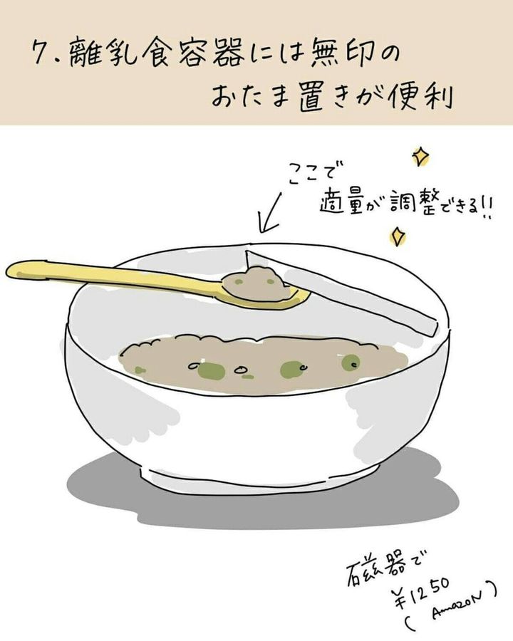 無印良品のお玉置き、なんと離乳食にも役立つとのこと。お玉を支える部分が、量を調整するときに良い役目を果たしてくれます。