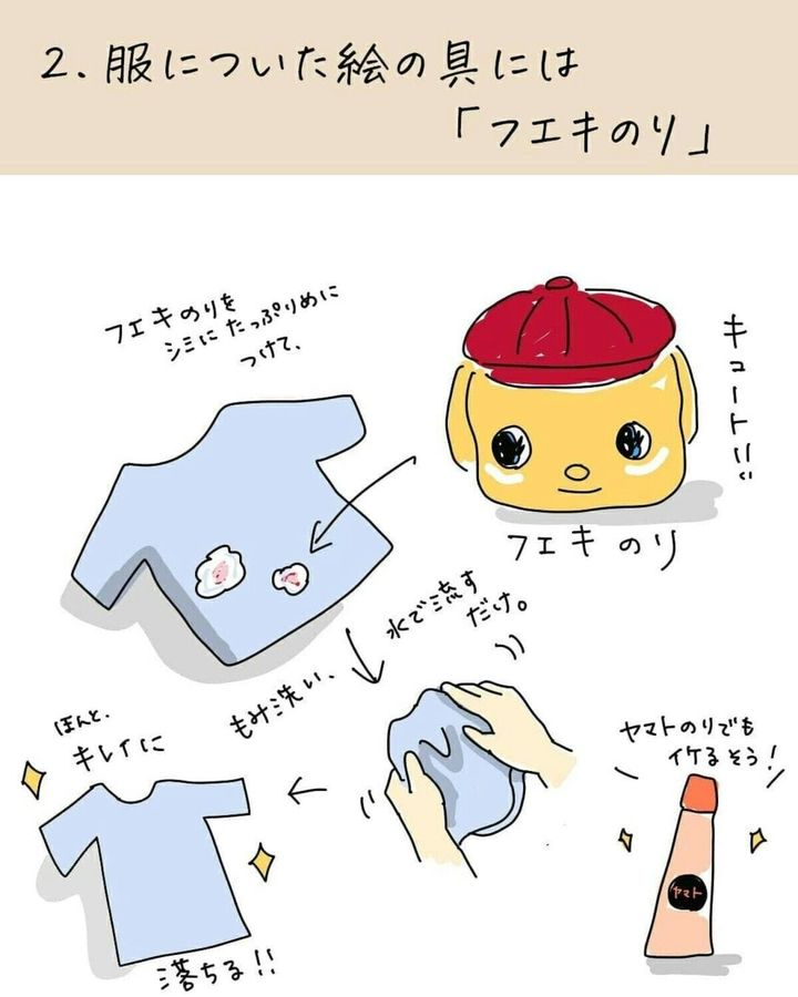2.服に付いた絵の具は「フエキのり」で落ちる