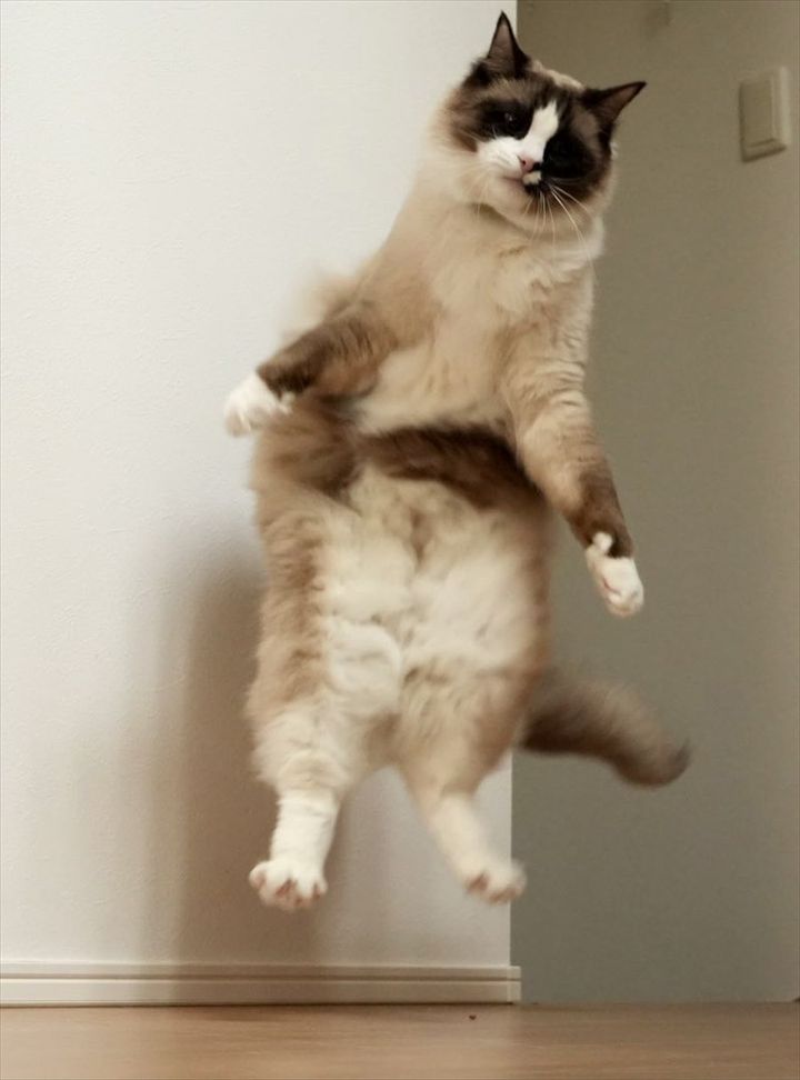 猫が宙を浮いている!?シャッターのタイミングで偶然撮影された一枚にビックリ「UFOにさらわれかけてる」