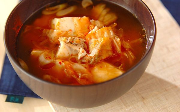 タラは韓国料理でもよく使われる食材です。こちらは、通年手に入りやすい甘塩タラを使った簡単スープ。白菜キムチ入りのピリ辛スープで煮ることで、あっさりしつつ満足感のある一杯に仕上がります。ニンジンや大根を加えて具だくさんにしても良いですね。