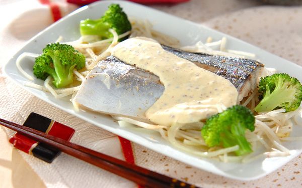 淡泊な味わいが特徴のサワラは、洋食にも合います。バターでコクを、白ワインで風味をつけて蒸したら、マヨネーズや生クリームをベースにしたソースをかけていただきます。顆粒スープの素で煮た野菜もたっぷり添えるので、あっさりながら食べ応えがありますよ。